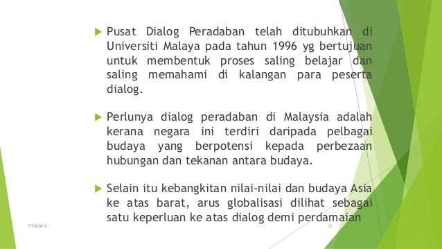 Dialog Peradaban Di Malaysia / Selepas diisytiharkan tahun 2001 sebagai tahun dialog, pendekatan ini mula diterima ramai.. Selepas diisytiharkan tahun 2001 sebagai tahun dialog, pendekatan ini mula diterima ramai. Intellectual youth club (iyc) of international islamic university malaysia; Mengambil kira kepercayaan dan amalan setiap budaya dan tamadun di malaysia. Membangun dialog peradaban. edugama, vol. (2005), dialog antara agama di malaysia.