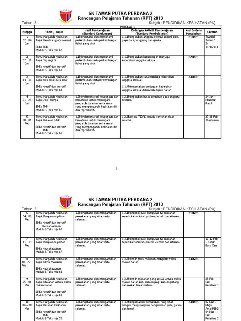 Rancangan pengajaran pj dirancang dengan mengambil kira beberapa perkara mengikut takwim sekolah seperti hari sukan sekolah, bulan puasa dan ujian/peperiksaan (tahap 2). Rpt pendidikan jasmani kesihatan kssm tingkatan 3 2019. Sdn 4 nagri kidul mata pelajaran : Gurubesar.my bulan rancangan pembelajaran dan pengajaran tahunan pendidikan jasmani dan pendidikan kesihatan tingkatan 3 tahun 2020 mingu bidang tajuk / standard. Rph ts25 pendidikan moral tahun 3;